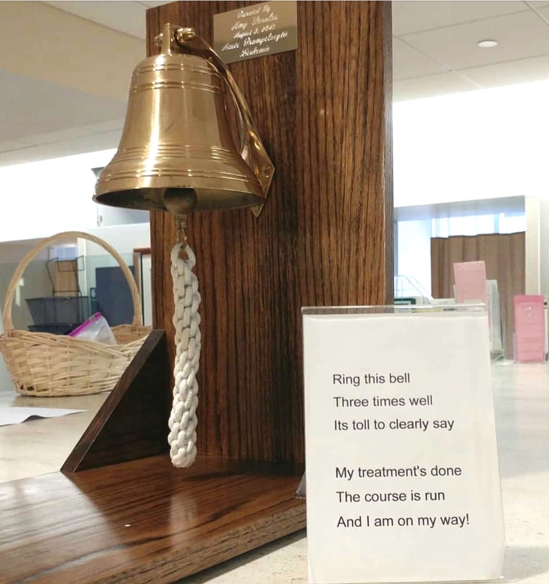 7. When I finished my chemo I didn’t ring the bell because I knew that I wasn’t done infusions for at least another 6 months.I did get 30 rounds of radiation after my BMX and I rang that bell because I was so glad to be done with that neverending painful burning! I made it through that and it sucked! Everyone puts off radiation as being so easy .I hated it! And was glad to be done especially after a 3 week day due to the beam being down ,having to adjust for 2 hidays and then getting 5 additional treatments added on.It may seem like nothing but as others were ringing the bell before me it was all I had motivating me I just wanted it to be my turn, because that phase of my treatment was over! I’m still getting infusions every 3 weeks but I’m glad I had a bell to ring to show that yes that was done move forward!