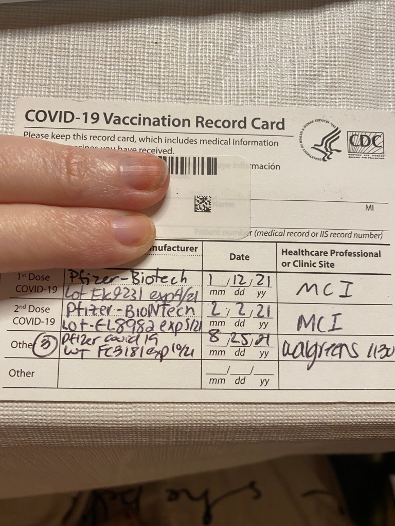 In the end, all I had to do was sign a piece of paper certifying that I qualified for the booster and no one looked at all my proof. To be honest, I was a little surprised that they didn’t want to verify, but I didn’t spend any time or energy arguing with them about that. I went first thing in the morning (literally got there before the pharmacy opened) so that there were few people around and I was able to get in right away to get my shot.