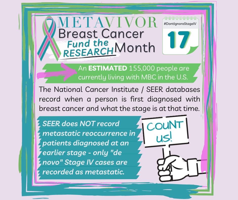 Metavivor has been instrumental in meeting with and advocating for SEER to be updated so that the databases can more properly reflect what is really going on. Other countries have done this already and there are technology options that can be extremely useful as we seek to understand the extent of the number of people affected by breast cancer.