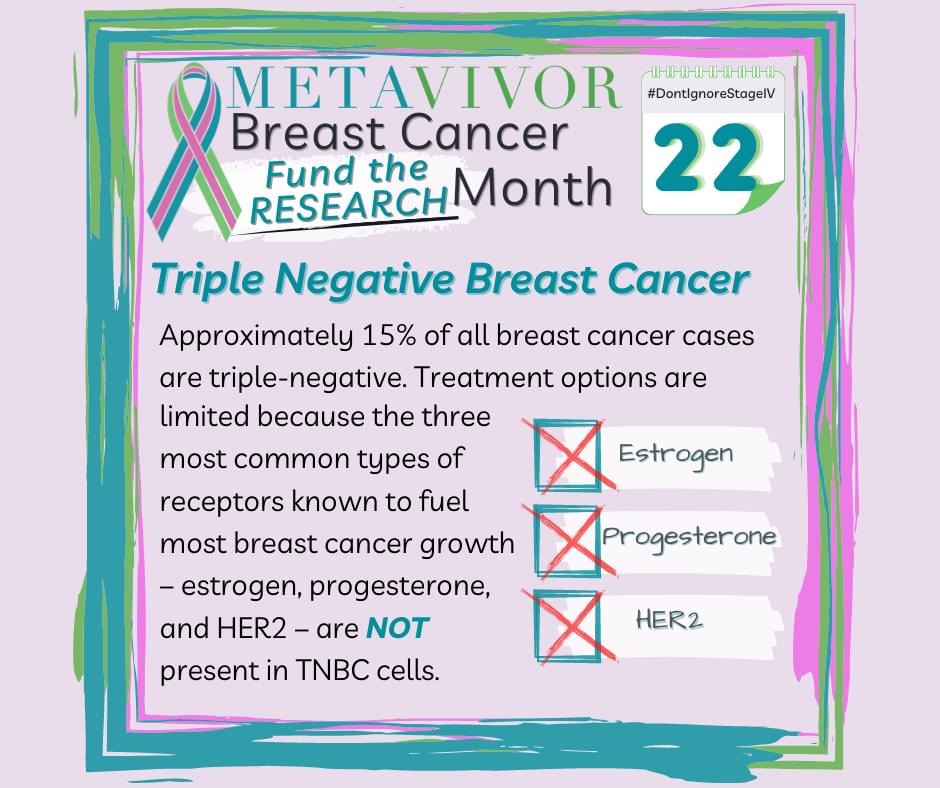 Receptors are how we often successfully target cancer cells and when there are no receptors, those same medications may not work. Our sisters with metastatic triple negative breast cancer have a particularly rough experience since the only medication that is usually effective are the harshest IV chemotherapeutic agents. This can mean some very rough days and lots of long lasting side effects.