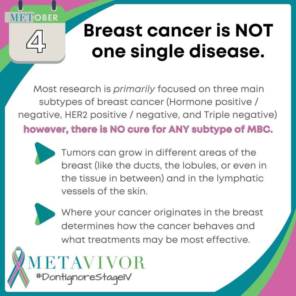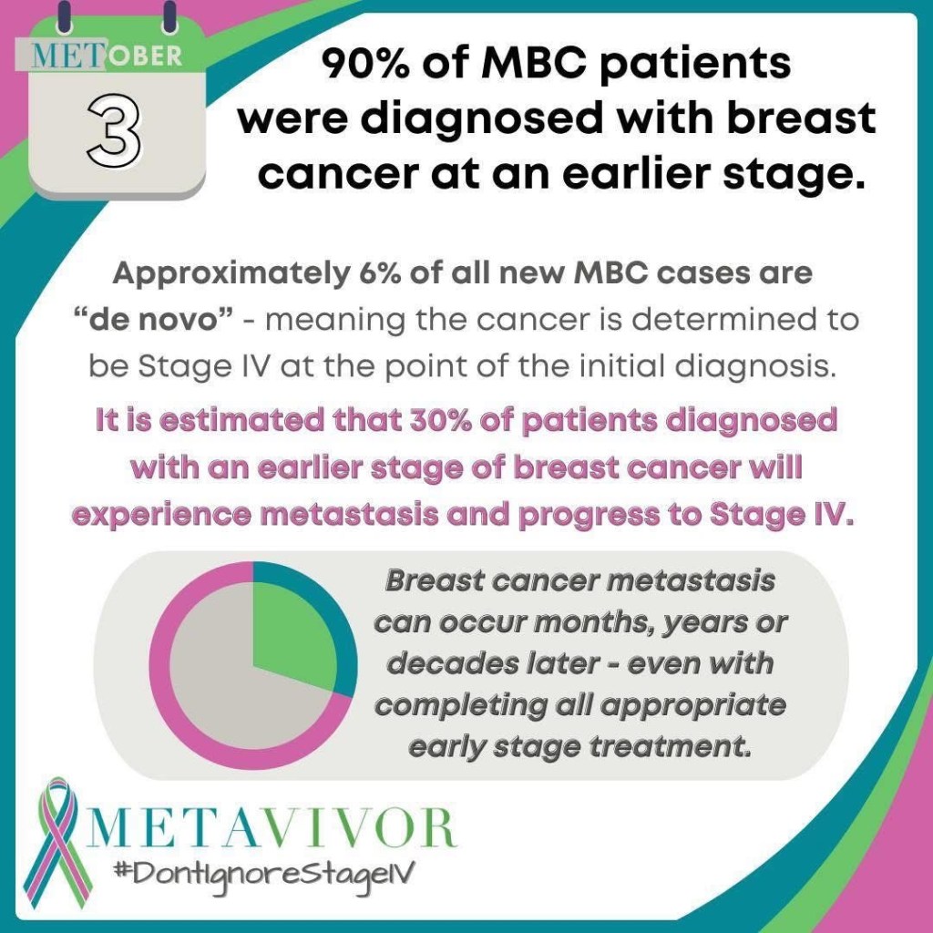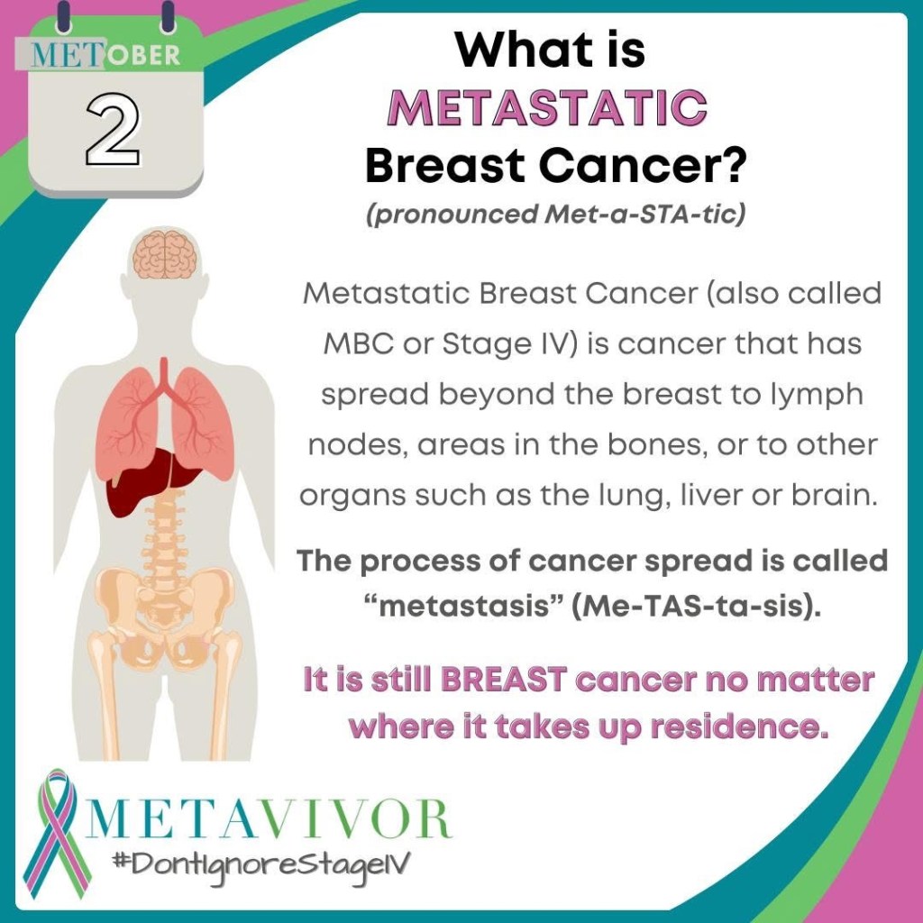Each October, Metavivor shares tiles of educational information and 2025 is no different. I’ll be sharing information throughout the month as I have the time/bandwidth and today I’m catching up on the first week of tiles: